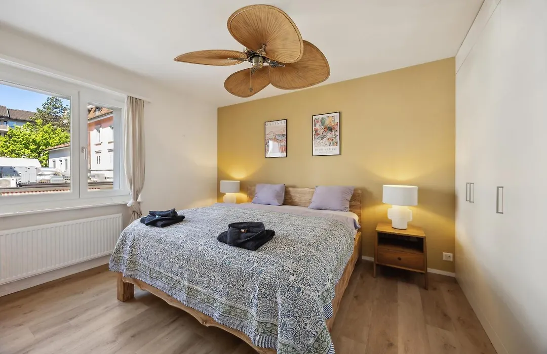 Per la vostra comodità, quest'appartamento offre una cucina completamente attrezzata insieme a una lavastoviglie e un forno. Per esplorare il resto di Zurigo, gli ospiti possono anche prendere un autobus alla fermata Messe/Hallenstadion, che si trova a soli 5 minuti a piedi.